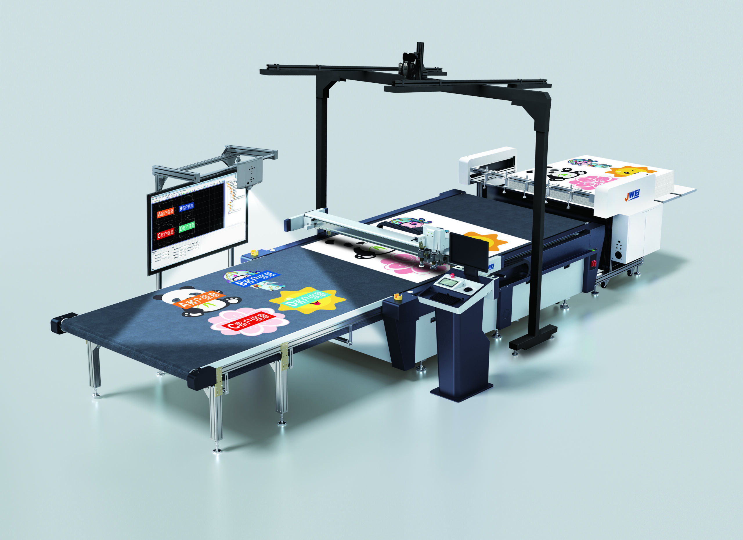 自动排版抠图,异型排版,自动抠图,无需人工,效率对比人工提升5倍以上; 收切同步,边切边收两不误,加速生产节奏; 投影分料,通过投影快速区分不同客户订单,省人工,提效率50%以上,杜绝分装出错,避免重复返工; 任务分类,自动添加二维码,为裁切文件附上专属身份证,保证后续环节不出错。