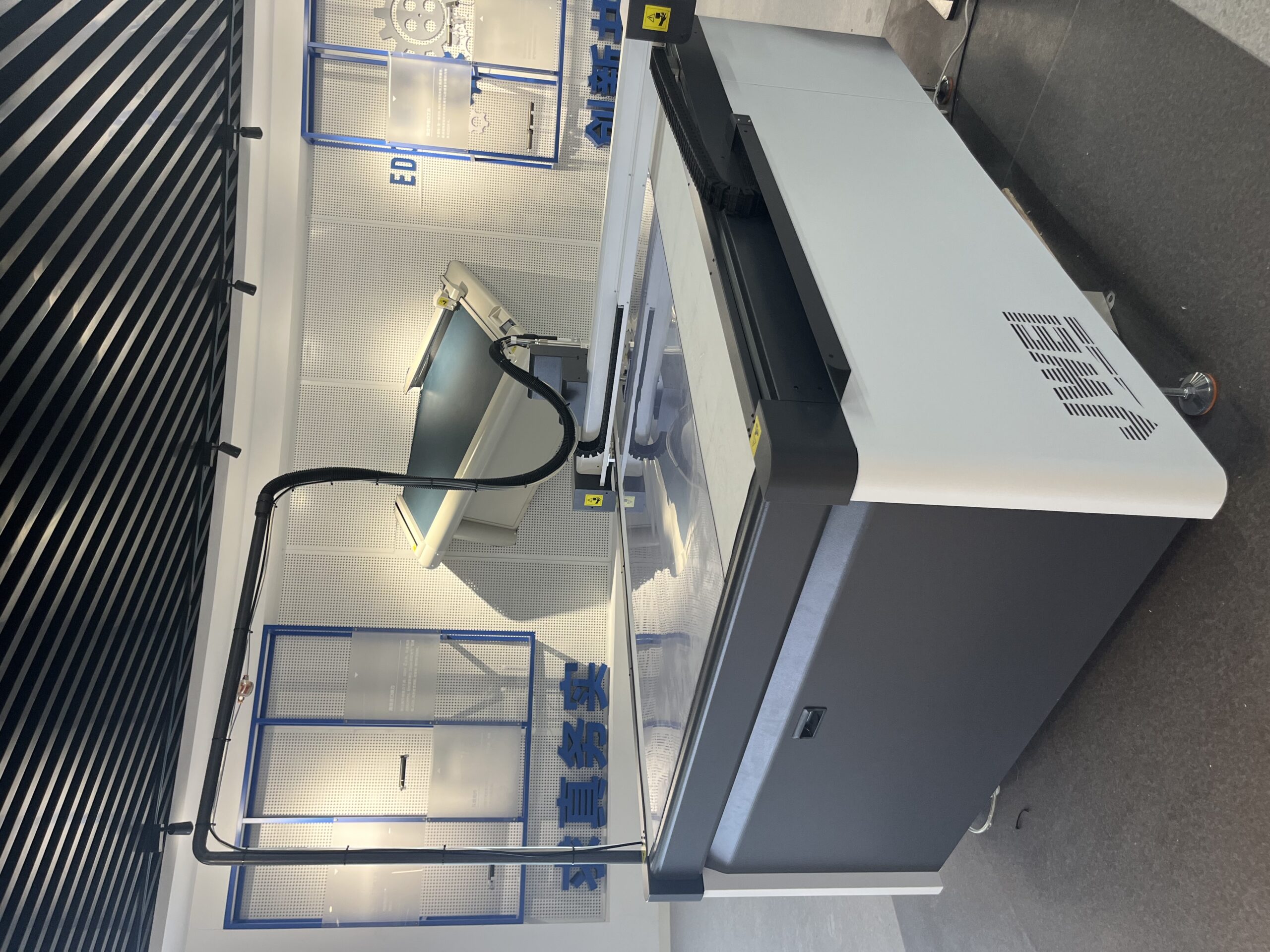 纬服装模板切割机的优势配置: 高转速铣刀、弹簧刀、刻字刀、柔性笔套,功能全全新结构设计;全新工业外观设计,既是产品,又是展品;真空吸附,全新风道设计;中英文液晶显示触摸屏;经纬全新模板设计软件 4.0 版本;十四五部委级本科教材编撰企业。