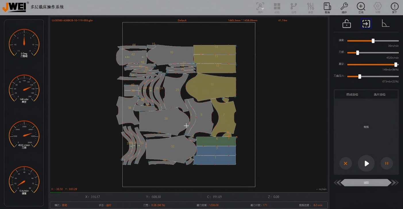 | 裁切材料 | 针织、牛仔、梭织、汽车复合PVC、仿皮、涤纶等柔性材料 |