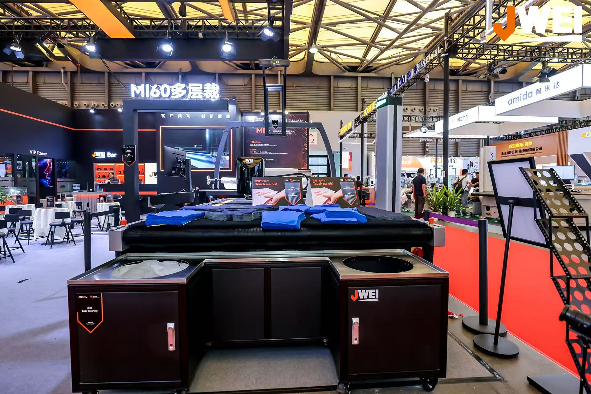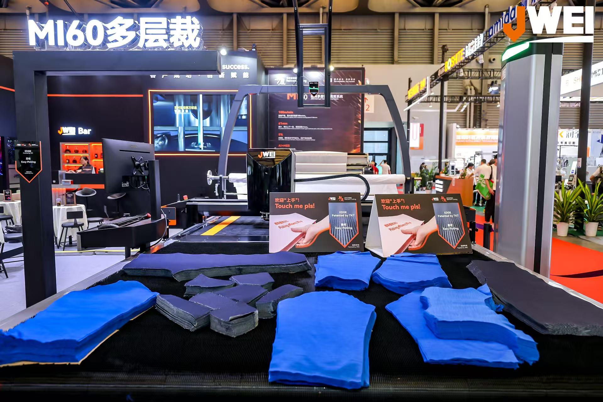 经纬突破性推出MI系列智能多层裁床,搭载“真边走边裁”核心技术,实现高达100米/分钟的高速切割效能,同时通过AI视觉定位与零间距裁剪技术将面料利用率再提升5%。其标配即顶配的全时动态变频真空吸附系统,确保针织至复合PVC等多种柔性材料裁切时层间公差严格控制在±1mm内,配合易览(Easy Viewing)、易设(Easy Setting)等创新性智能模块,显著降低操作难度。该系列可广泛应用于服装、汽车内饰、医疗防护材料领域,为高效精密裁切树立新基准。
